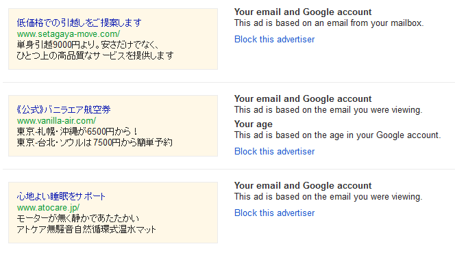 Googleはどうやって私に年頃の子供がいることを把握できたのか。やっぱりメールボックス内のメッセージの情報なんだろうか。